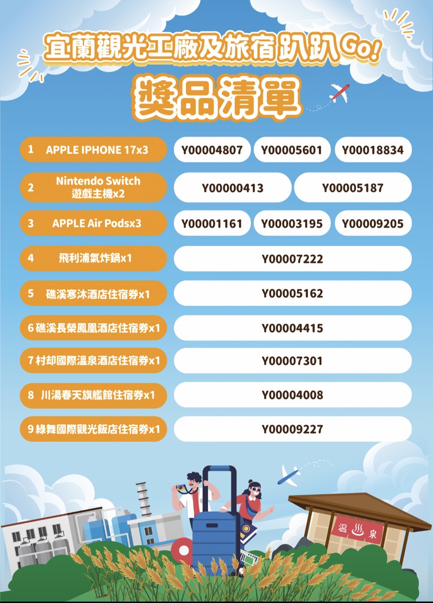 2. 活動名稱:宜蘭觀光工廠及旅宿趴趴GO 消費集點 豪禮等你抽